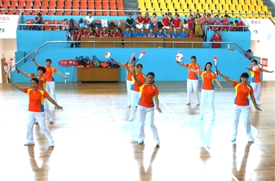 ?本網(wǎng)訊?? 6月15日,由市文體廣新局主辦、市老體協(xié)承辦的2018年全民健身運(yùn)動柔力球展示大會在市體育館舉行,來自全市各鄉(xiāng)鎮(zhèn)、街道的14個代表隊(duì)參加。最終,市供電公司、拿口鎮(zhèn)代表隊(duì)分獲A組、B組優(yōu)勝獎,水北辦事處、和平鎮(zhèn)代表隊(duì)并列獲得C組優(yōu)勝獎。圖為比賽現(xiàn)場。(孔祥明)