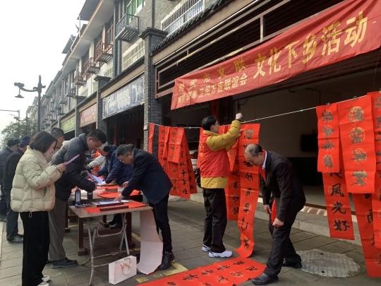 春節(jié)臨近,為弘揚(yáng)春節(jié)傳統(tǒng)文化,營造歡樂祥和的新年氛圍。衛(wèi)閩鎮(zhèn)聯(lián)合市文聯(lián)開展“迎新春 送祝福”文化下鄉(xiāng)惠民活動,為群眾免費(fèi)寫春聯(lián)、送“福”字,以筆墨之情把新春祝福送到千家萬戶。 活動現(xiàn)場,墨香四溢,書法愛好者們齊聚一堂,揮毫潑墨,一副副寓意深刻、喜慶吉祥、散發(fā)著清新墨香的大紅春聯(lián)、大紅“福”字展現(xiàn)在人們面前。眾多群眾聞訊而來,圍在書桌旁,一邊欣賞書法創(chuàng)作,一邊挑選心儀的春聯(lián),現(xiàn)場洋溢著歡樂祥和的氛圍。大家紛紛表示,這樣的活動很有意義,既感受到了傳統(tǒng)文化的魅力,又提前收到了濃濃的新春祝福。 過新年,樹新風(fēng)。春聯(lián)中也融入了“移風(fēng)易俗”“文明鄉(xiāng)風(fēng)”的字眼,倡導(dǎo)群眾摒棄陳規(guī)陋習(xí),在潛移默化中接受移風(fēng)易俗的宣傳教育。