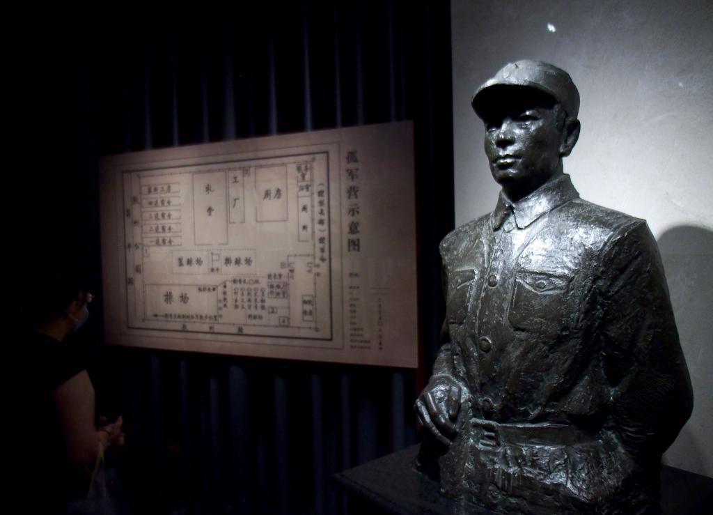 ??這是在上海四行倉庫抗戰紀念館拍攝的謝晉元銅像(2020年8月25日攝)。新華社記者 任瓏 攝