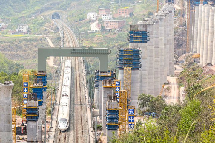 2025年3月27日,在成達萬高鐵左線福壽跨渝萬城際特大橋項目施工現(xiàn)場,成達萬高鐵首個跨既有高鐵鋼橫梁吊裝完成,鄭渝高鐵線上一列動車從門式墩鋼橫梁下通過。新華社發(fā)(黃茂程攝) 報告指出,綠水青山就是金山銀山理念是立足自身國情和發(fā)展實踐形成的中國自主生態(tài)文明建設理論,符合人類社會發(fā)展規(guī)律和生態(tài)文明建設規(guī)律,在實踐中展現(xiàn)出強大的真理力量和獨特的思想魅力。這一理念創(chuàng)新和突破了現(xiàn)代環(huán)境經濟理論,推進和拓展了中國式現(xiàn)代化道路,傳承和發(fā)展了中華優(yōu)秀傳統(tǒng)生態(tài)文化,將推動和創(chuàng)造人類文明新形態(tài)。
